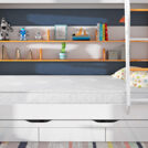 Матрас предлагает качественную поддержку на всех этапах взросления, сочетая компактный блок независимых пружин, натуральный кокос для жёсткости и ортопедическую пену для дополнительного комфорта.